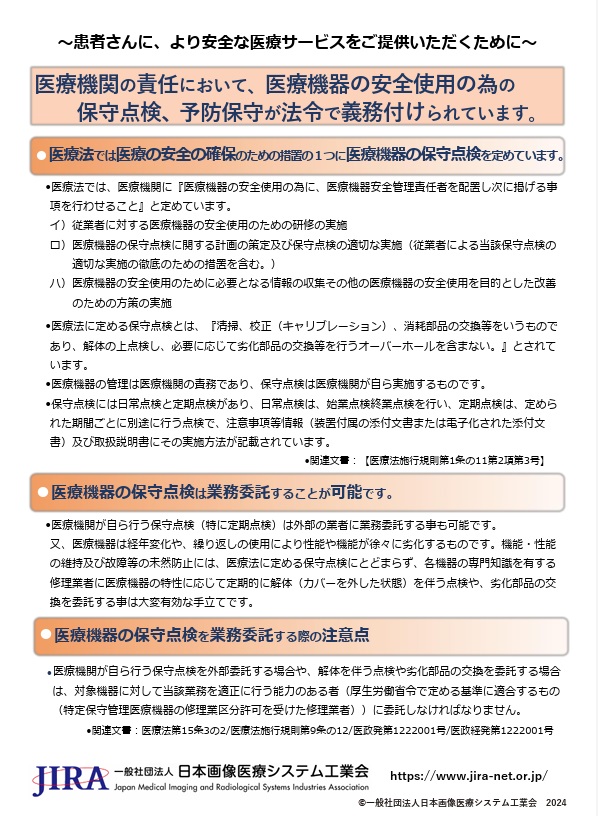 弊社よりご購入お客様各位 X線撮影装置 保守点検のご案内