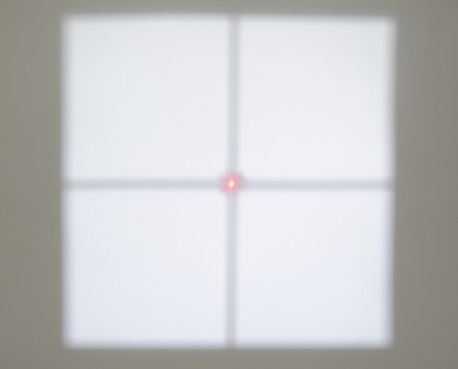 撮影距離が合うとレーザーがピタッと重なり、位置合わせが簡単。